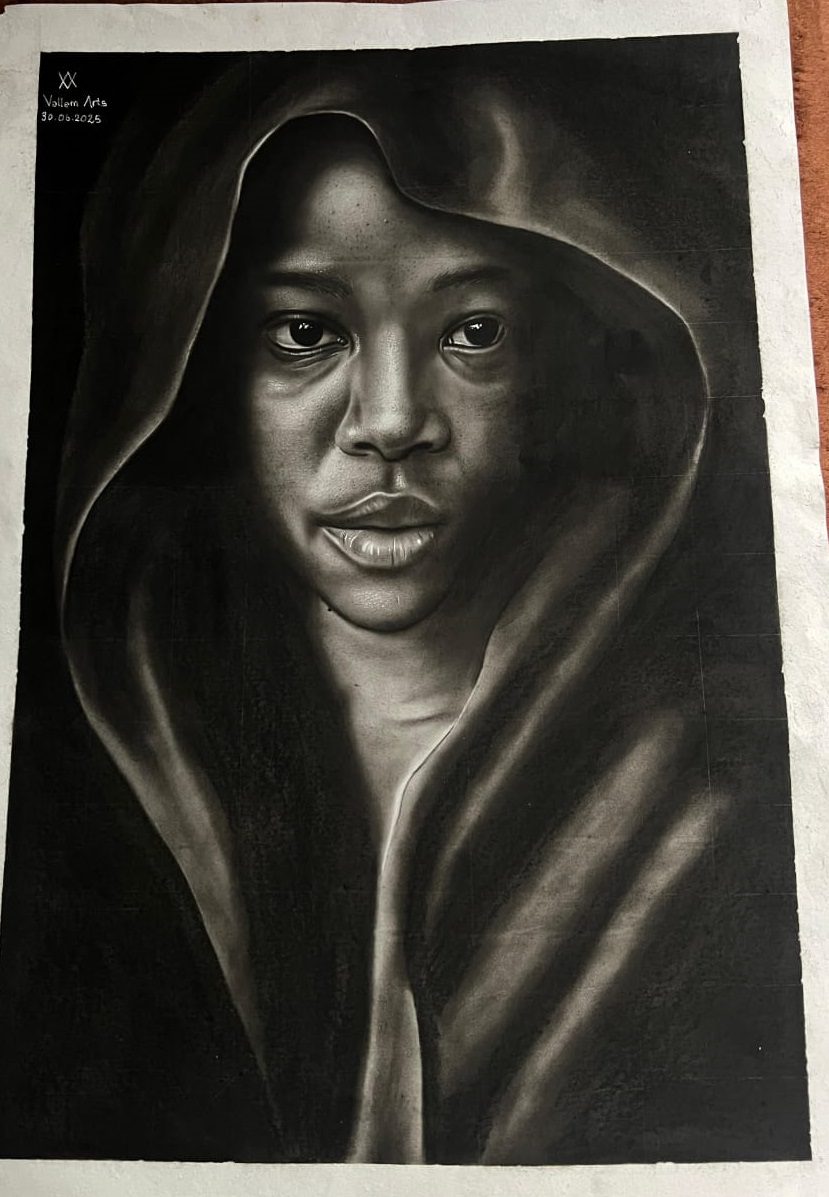 charcoal pencils, charcoal powder, jelly roll pen, and graphite pencils on paper – unframed