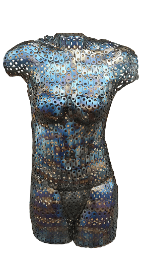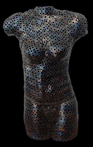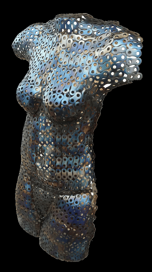 This was made from the front half of the original mold I used for my “reflections” piece, about 8yrs prior. Made from a forklift’s chain links. In an indirect way, helping with the narrative of the strength in the female form.