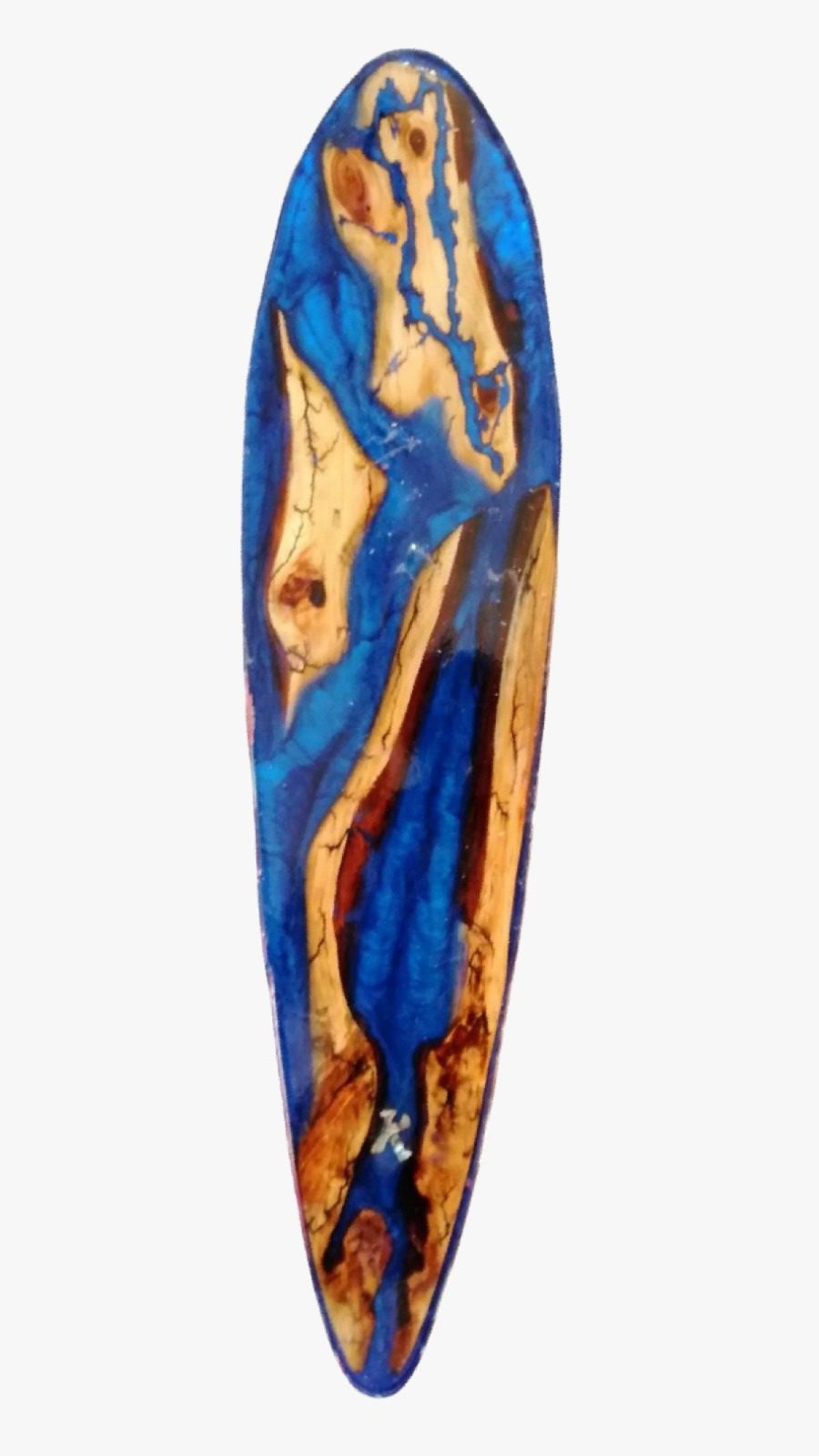 Epoxy resin, electrocuted wood on upcycled skateboard