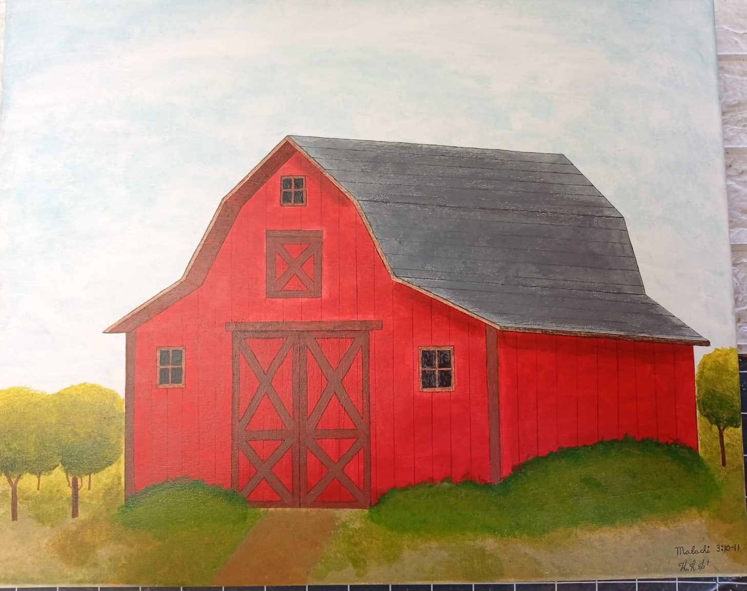 Acrylic and Krylon Kamar varnish on board